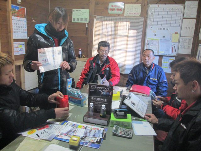 勉強会[まとめ] 2014.1.15 あけましておめでとうございます。今年もスタッフ一同、「笑顔と元気」で過ごしていこうと思います。さて、年は明けましたが去年の勉強会の写真がたまったので、どーーーーーんとまとめてだします。11月の勉強会は、発煙筒がテーマでした。発煙筒にも使用期限があります。その期限日の確認、そして交換の確認の徹底とお客様への説明の仕方などを勉強しました。 12月は車検時の検査受け入れ方法を再確認しました。毎回やっていることですが、受け入れ時が肝心なのでどの工程も、気を抜く事がないように要確認です。 今年もよろしくお願い致します。