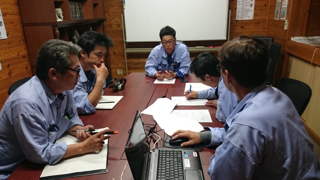 工事部11月勉強会 2015.11.2 11月、工事部の勉強会は・・・。工事アンケートに回答するために、部員で現場における施工上の留意点を討議しました。 それぞれに条件の違う現場を担当するので、現場代理人によって様々な意見が出ていたようです。こうした機会も大切に業務に活かして行きましょう。