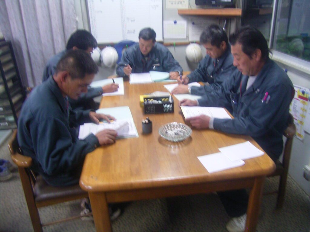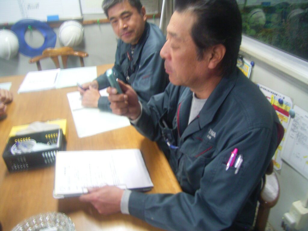 日和技建10月度勉強会 2014.11.1 とうとう11月にはいってしましましたね・・・。今年もあと2ケ月です。本当に月日が経つのは早いなぁ~と思います。さて、今月の勉強会は佐藤場長による「点呼」についてでした。 毎日行っている【アルコールチェック】 無事故・無違反・安全運転で業務を行う事を再確認しました。これから寒くなるし、夕方暗くなるのも早いので・・・。皆さんもどうか安全運転でお願いします!!