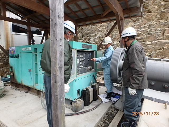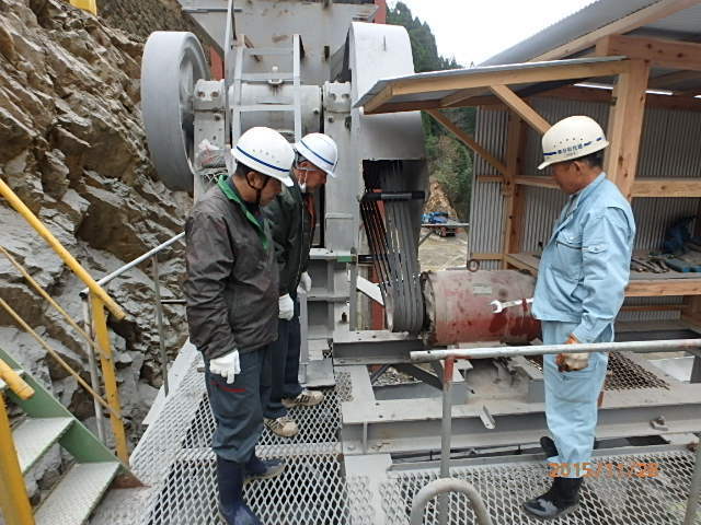 日和技建11月度勉強会 2015.11.28 今年もあと1ヶ月と数日・・・。平成27年ひつじ年もあっという間でしたね。今月の勉強会は「山中産業」のクラッシャーの使用方法・点検・注意点について☆発電機の始動(オイル・水・燃料の点検)☆クラッシャーの点検・整備☆クラッシャーの注意点☆コンベアベルトの調整 以上の項目について鎗水さん主導で行いました。設備ありきの業種なので、機械をいたわりつつ、安全第一で業務をやっていきたいと思います。