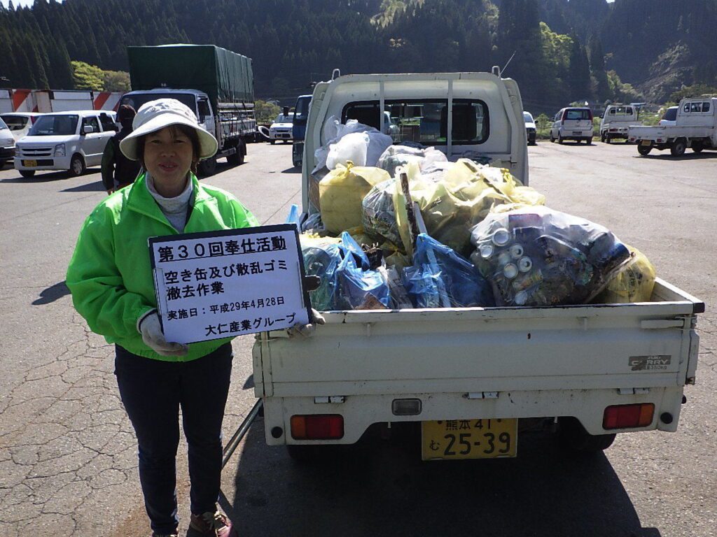 第30回奉仕活動 2017.4.28 桜の季節も過ぎ、山の木々も緑に染まってきましたね。久しぶりにすっきりとした晴れ空のもと、第30回奉仕活動を実施しました。始めは恒例の集合写真。 本社事務所前からスタートし 処理場付近、町境 分別作業 今年はいつもよりも多かった様です。毎回、感じる事ですが・・・モラルの向上、当たり前の事を当たり前にと願っています。