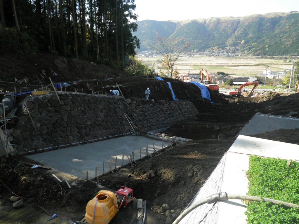 This is the site of the stream conservation work on Doigawa River, currently under construction in Teno district, Aso City.