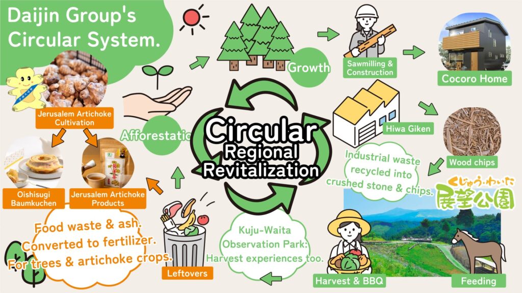 Hiwa Giken is the only industrial waste intermediate treatment facility in Aso County capable of processing wood waste and rubble (including asphalt and concrete debris). We focus on environmentally friendly recycling processes and also sell crushed stone, wood chips, and firewood. Feel free to call us for dump truck delivery!
