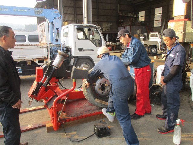 March Study Session 2018.4.6 We invited representatives from B.S. to conduct a training session on how to operate large tire changers and important points to note during operations.With this training, we believe we can now perform tire changes in-house to a certain extent.
