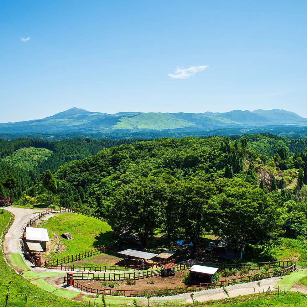 くじゅう・わいた展望公園で遊ぼう。当公園では、九重連山が一望でき、ふれあいと体験を大切にしています。公園内の観光公園は、収穫体験ができます。